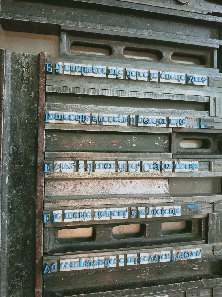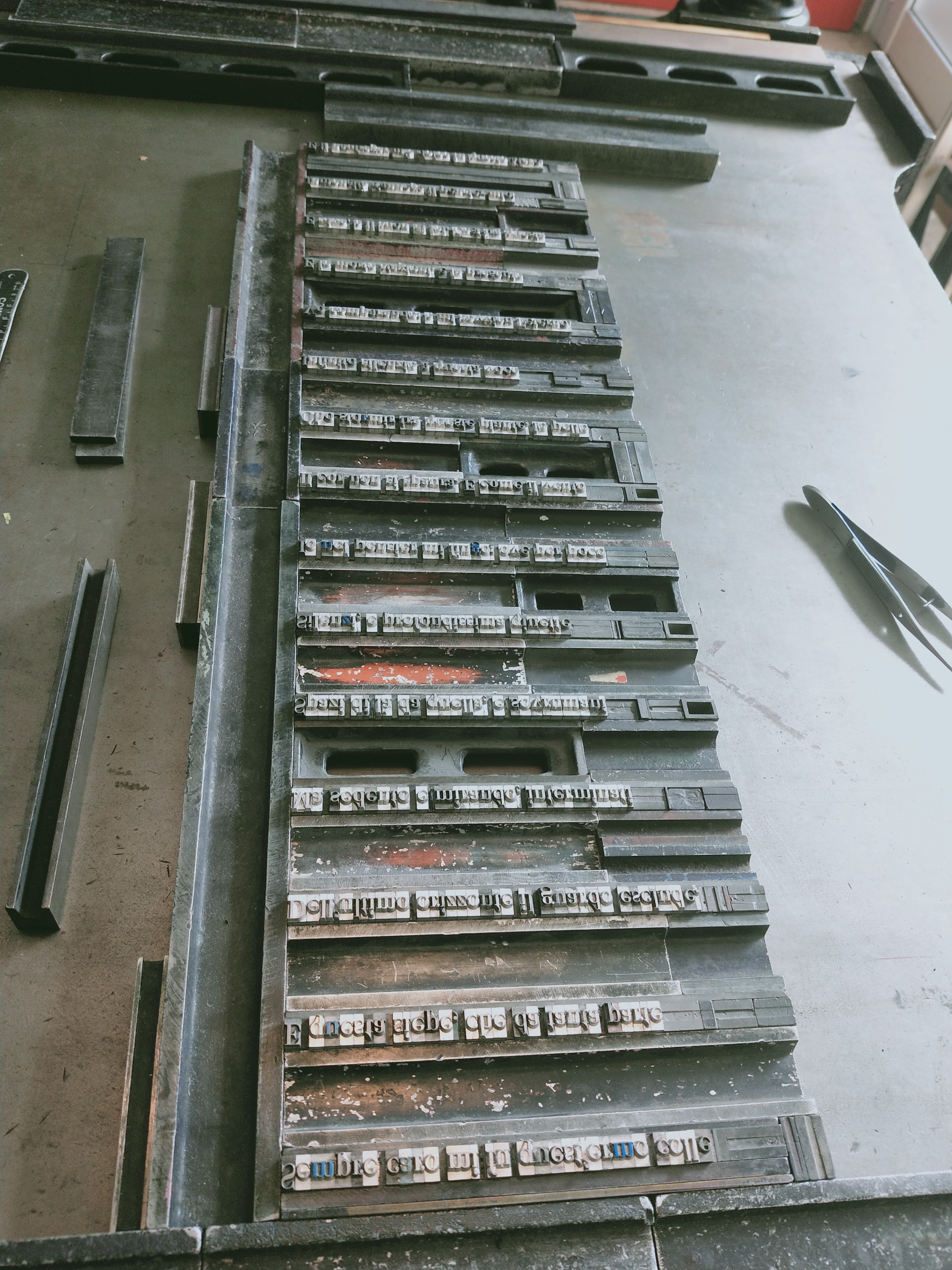 Aquí os dejo pues unas fotos del proceso de composición, preparación del molde, tintas, impresión y acabado. Perdonadme (si podéis…) por mi incontinencia verbal y escrita.